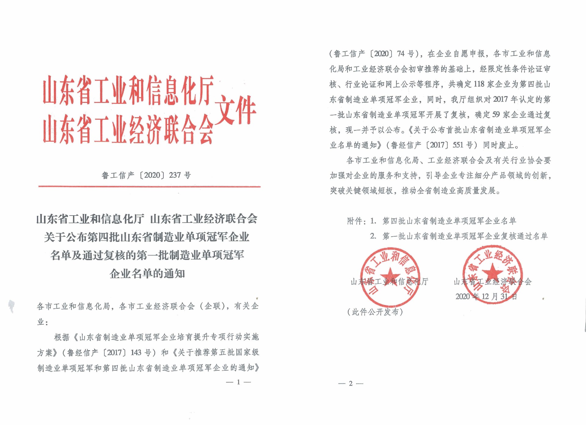 近日,山東省工業(yè)和信息化廳、山東省工業(yè)經(jīng)濟(jì)聯(lián)合會(huì)公布了第四批山東省制造業(yè)單項(xiàng)冠軍企業(yè)名單,和普威視榜上有名!